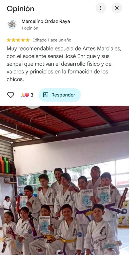 Súper recomendable escuela, el Sensei es muy profesional, ayuda mucho en la motivación de los niños, aprenden valores, disciplina y crecimiento personal!